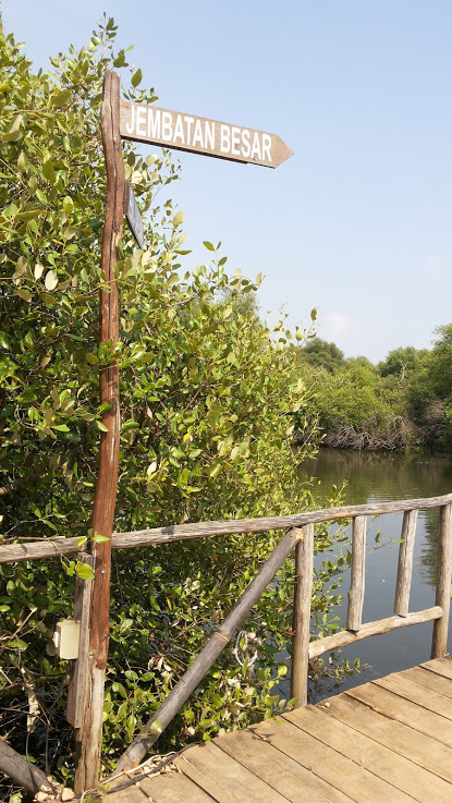 Dan, dari situ kami mulai menikmati pemandangan hutan bakau yang ada di kanan dan kiri. Menurut teman saya, masih lebih bagus hutan bakau yang ada di Bali. Berhubung ini pengalaman pertama saya mengunjungi hutan bakau…, perasaan ya, biasa-biasa saja, ya. Tapi, hal ini jangan mengurangi keinginan kalian untuk ke sini, ya.